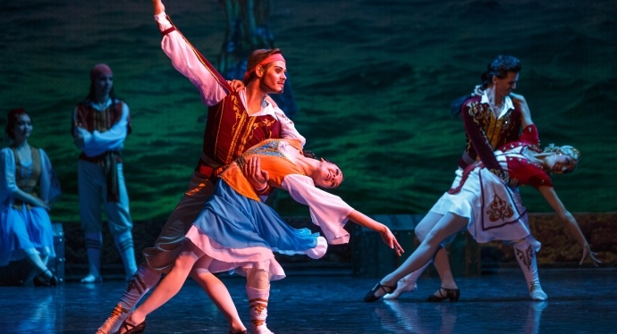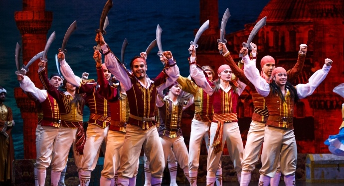 Похищенную корсаром Конрадом невольницу Медору с помощью обмана и предательства возвращает к себе её владелец Исаак Ланкедем и продаёт паше Сеиду. Влюблённый в Медору корсар с друзьями проникает во дворец паши на берегу Босфора, освобождает пленницу и бежит с нею на корабле, который терпит крушение. Медора и Конрад спасаются, достигая прибрежной скалы.