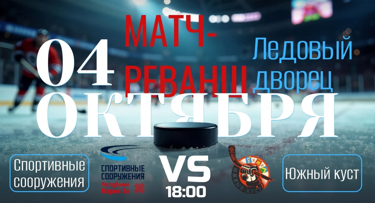 Отдых и развлечения4 октября в 18:00 Ледовый дворец «Марий Эл» - Матч Реванш! На лед выйдут «Спортивные сооружения» (Йошкар-Ола) против «Южного куста» (Чувашская Республика). VR-зона, развлечения, адреналин и мощная поддержка болельщиков!