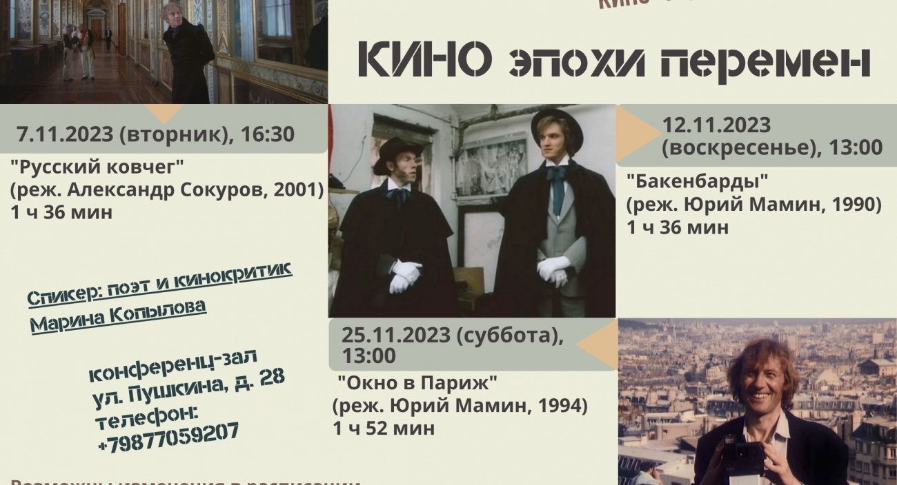 Отдых и развлеченияКиноклуб «Родина» и Национальная библиотека имени С. Г. Чавайна продолжают показ фильмов российских режиссёров. В ноябре мы смотрим 3 фильма: