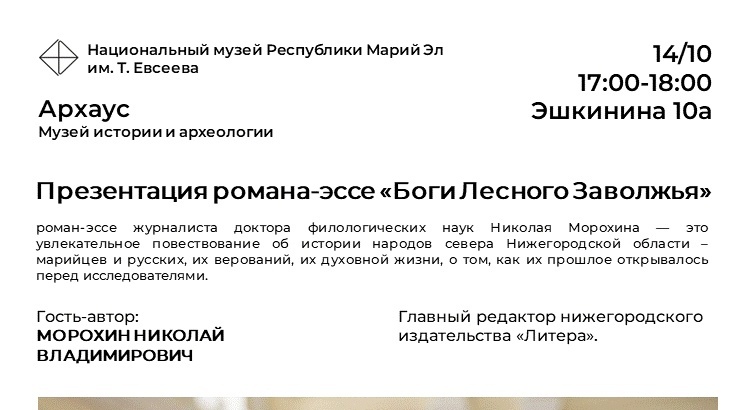 Этот уникальный проект, доктора филологических наук Николая Морохина — увлекательное повествование об истории народов севера Нижегородской области — марийцев и русских, их верований, их духовной жизни, о том, как их прошлое открывалось перед исследователями.