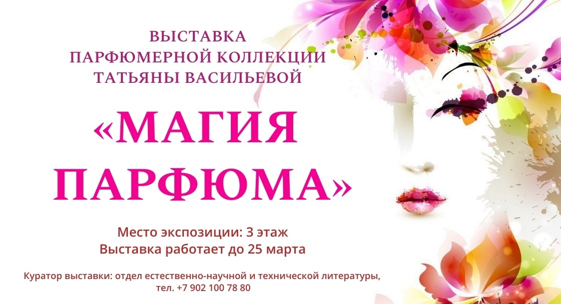 В честь Татьяниного дня 25 января в 11-00 в главной библиотеке состоится открытие выставки парфюмерной коллекции Татьяны Васильевой «Магия парфюма».