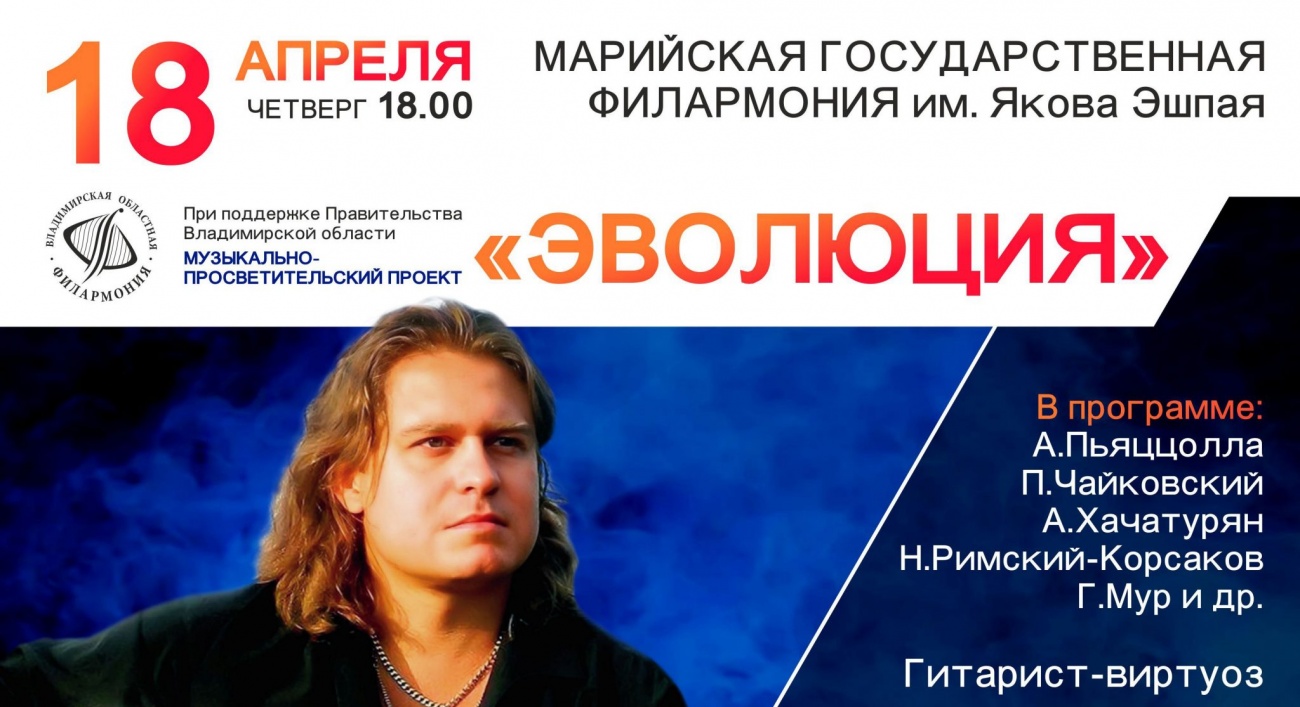 Эволюция» - совместный музыкально-просветительский проект стремительно набирающего популярность творческого союза знаменитого гитариста-виртуоза Романа Мирошниченко с Камерным струнным оркестром Владимирской филармонии под управлением Александра Сонина. В 2023 году проект был включён в реестр портала «Россия – страна достижений», представив Владимирскую область в официальном каталоге значимых федеральных и региональных достижений страны.