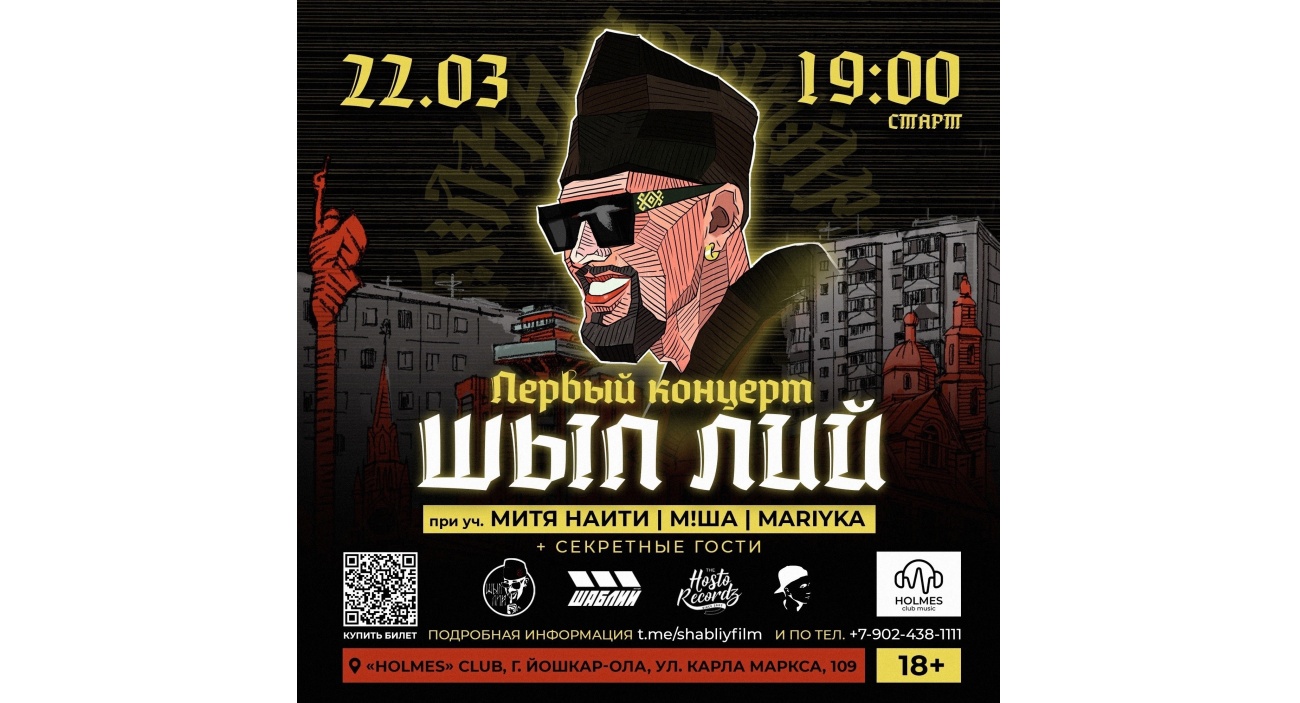 Концерт рэпера «ШЫП ЛИЙ», который исполняет свои песни на марийском языке. Кроме презентации альбома «Йошкар-Ола» гостей ждут выступления восходящих звезд и любимых исполнителей, музыкальные и танцевальные коллективы, а также фотозона и световое шоу.