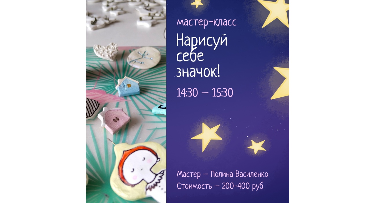 14:30 — 15:30 — рисуем себе значок вместе с Полиной Василенко