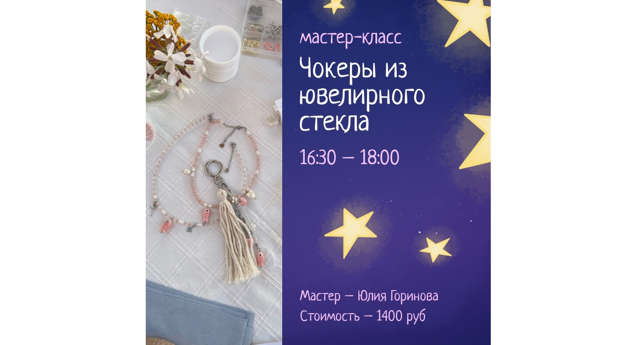 16:30 — 18:00 — мастерим чокеры из ювелирного стекла вместе с Юлией Гориновой