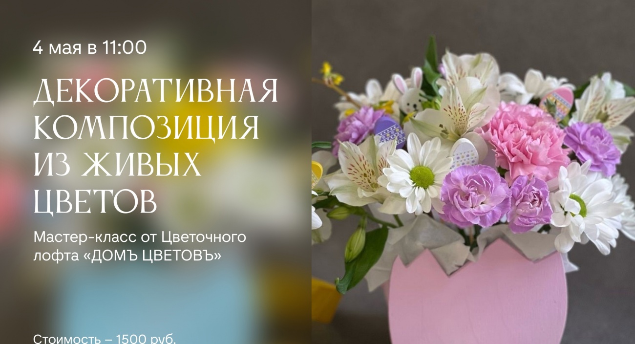 Вместе с феями из цветочного лофта ДОМЪ ЦВЕТОВЪ создадим пасхальную композицию из живых цветов.