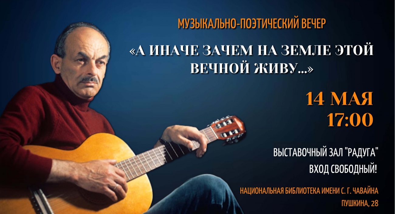 «А иначе зачем на земле этой вечной живу?..» — под таким названием 14 мая в 17 часов в Национальной библиотеке имени С. Г. Чавайна состоится музыкально-поэтический вечер, посвящённый Булату Окуджаве (1924–1997).