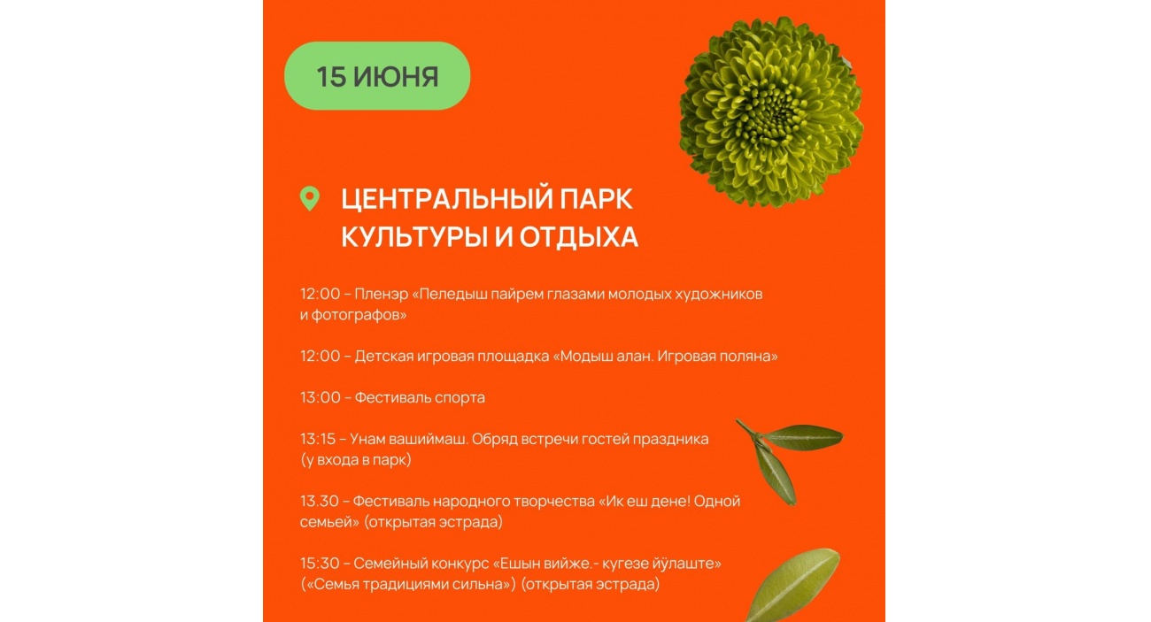 15.00 Семейный конкурс «Ешын вийже — кугезе йÿлаште» («Семья традициями сильна») (открытая эстрада)