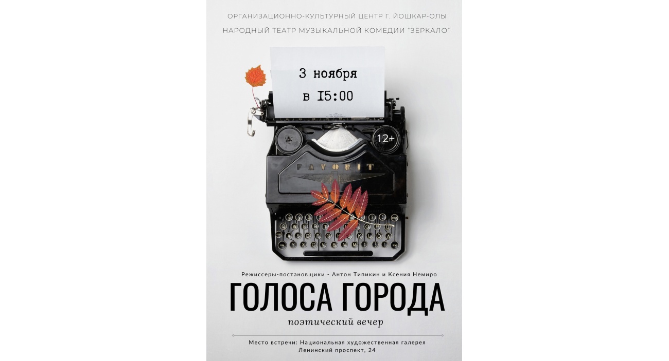 Уже не первый раз артисты Народного театра музыкальной комедии «Зеркало» выступают в наших стенах, создавая атмосферу любви и добра. «Зеркало» — лауреат Государственной молодежной премии Республики Марий Эл в области литературы и искусства имени Олыка Ипая. Мероприятие пройдет при участии МБУК «Организационно-культурный центр города Йошкар-Олы».