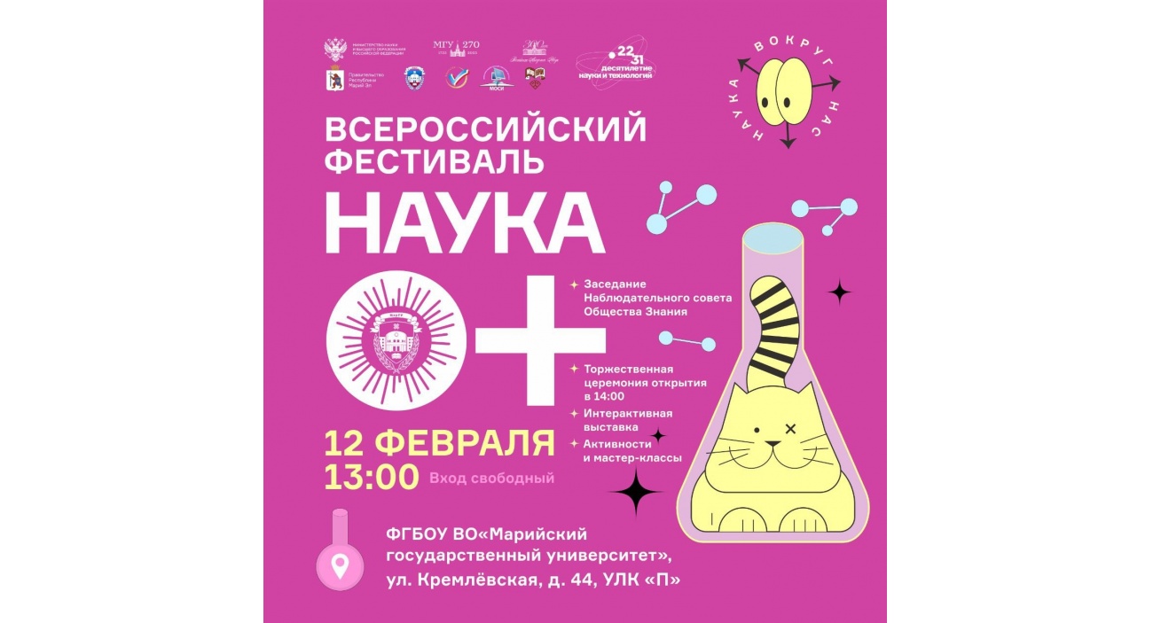 На площадках Марийского государственного университета «Наука памяти», «Наука о жизни», «Наука и Космос» узнаете о вкладе науки в Победу, погрузитесь в мир естественно научных исследований и космоса.