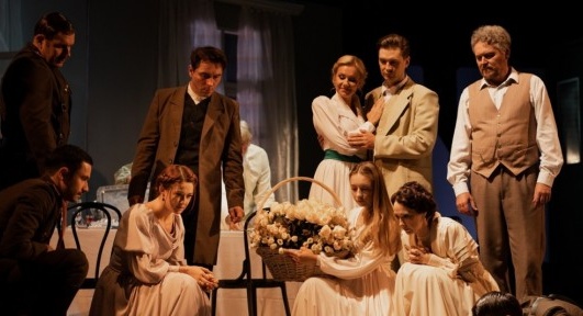 Рядом с ним - тоже три сестры: Ольга с угасающей верой в необходимость своего дела, Маша - с искалеченной, больной любовью и Ирина - с тающей надеждой на благотворные перемены, связанные с отъездом в Москву.