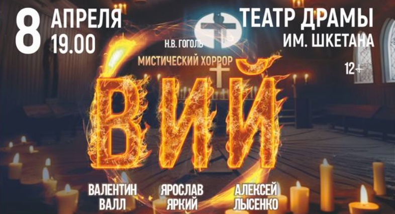 Произведение, в котором на фоне настоящих мистических ужасов происходит борьба света и тьмы, добра и зла. Инсценировка сделана с огромным почтением и любовью к Н.В. Гоголю, при этом спектакль не скучный пересказ великой повести классика, а энергичная постановка в стиле хоррор с пластикой и танцами, спецэффектами.