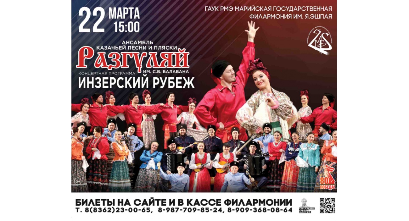Фото: Марийская государственная Филармония имени Якова Эшпая https://filmariel.ru/events/konczert-inzerskij-rubezh-ansambl-kazachej-pesni-i-plyaski-razgulyaj-imeni-s-v-balabana/