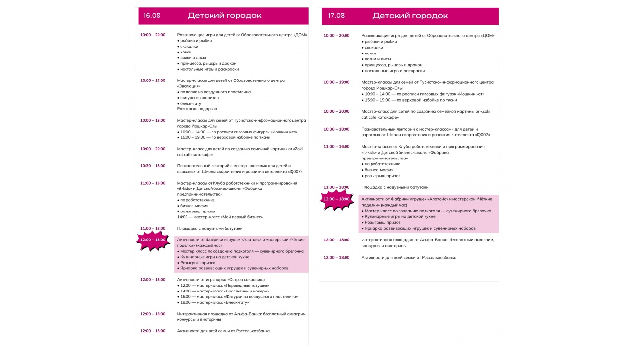 — Интерактивы: игры, лекции, семейные квесты и т.д.;