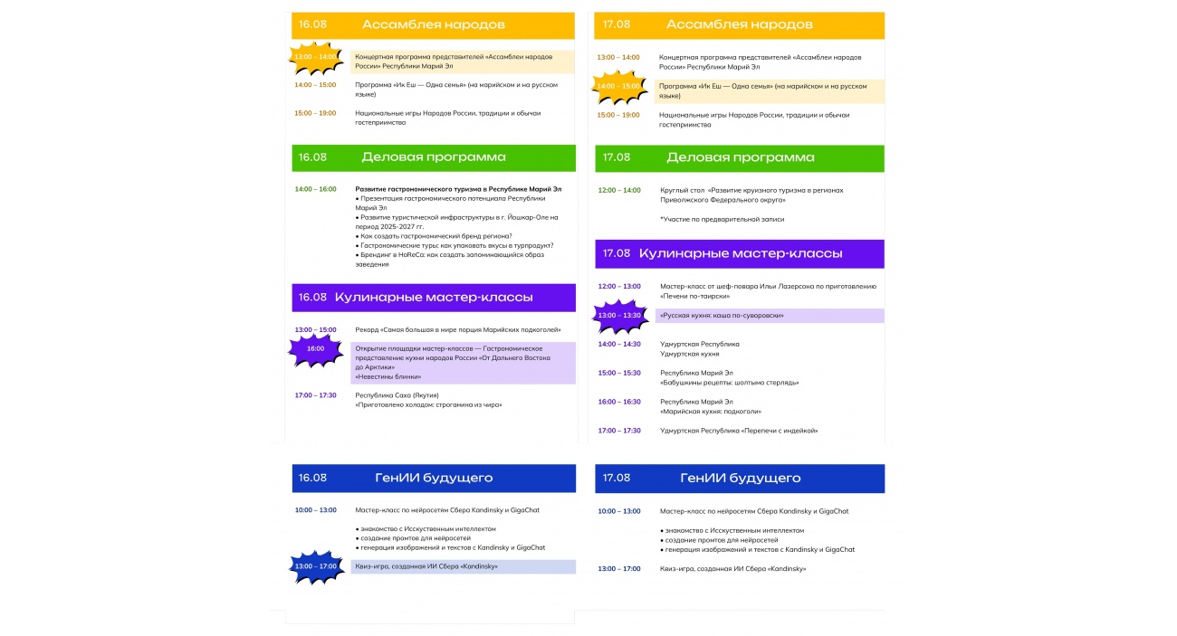 — Фермерство и ремесло: зона «Честный продукт», «Дом лесного мастера», ярмарка «Живое дело»;
