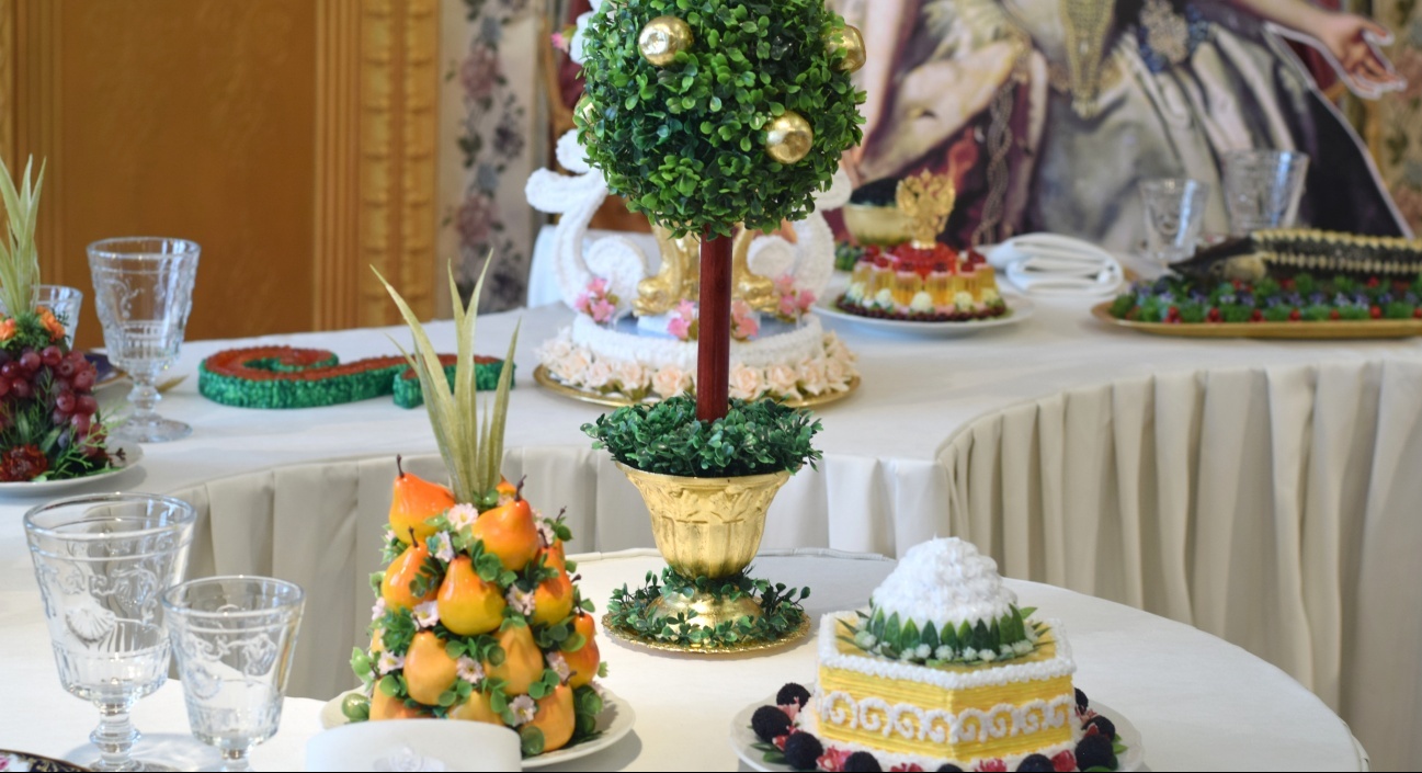 В экспозиции представлено 44 произведения из коллекции Русского музея, которые великолепного дополняют инсталляции главного художника Марийского ТЮЗа Б.И. Голодницкого, а также кулинарные композиции кондитера-виртуоза Алдиса Бричевса, изготовленные им по старинным рецептам XIX века!