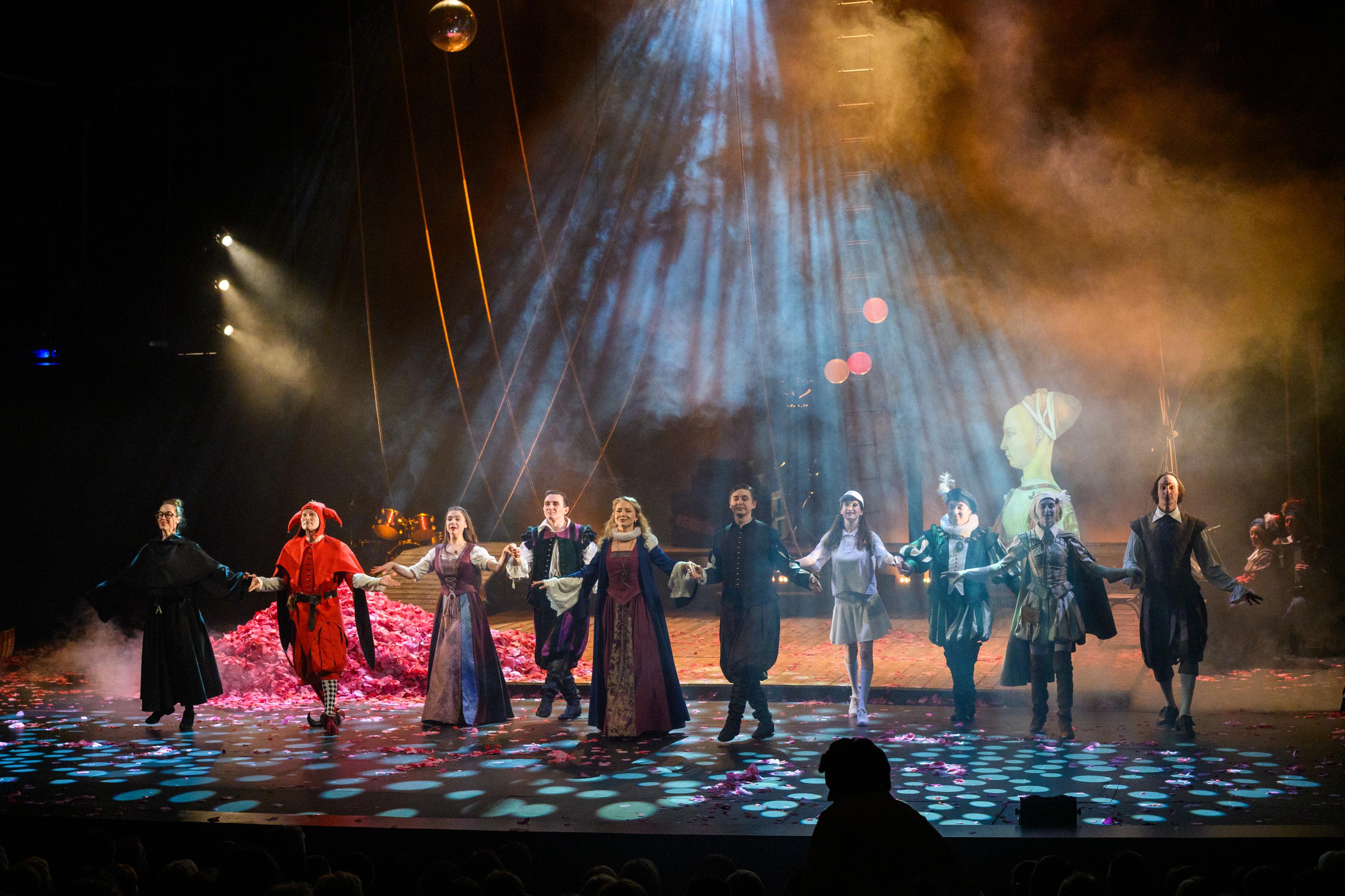 Спектакль по пьесе Уильяма Шекспира «Двенадцатая ночь, или Что угодно» — комедия о любви, обмане и недоразумениях. Действие происходит в вымышленной стране Иллирии, которая была для англичан Шекспировского времени сказочной и экзотической. Название отсылает к празднику Двенадцатой ночи после Рождества, времени пиров и карнавального веселья. Легкий, остроумный сюжет, полный забавных недоразумений посвящен, конечно же, любви. Герцог Орсино влюбляется в прекрасную графиню Оливия, но она любит другого. Тот, другой, — Цезарио — переодетая в мужчину Виола, выжившая после кораблекрушения девушка, потерявшая брата…