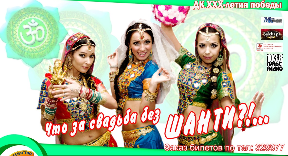 Отдых и развлеченияВ центре программы – заводные хиты от группы Шанти в цыганском, индийском, восточном, кавказском стилях. Солистки – Милена, Эльвира, Гульнара – активно выступают на праздничных событиях, популярен блок с медведем и гаданиями. Однажды во время свадебного торжества жених поднял бокал и предложил выпить за Шанти, выступление очень понравилось гостям… Свидетель продолжил: «Что за свадьба без Шанти?!..», гости начали повторять эту фразу под звон бокалов... Так появилось название проекта! Думаем, в преддверии свадебного сезона, Концер-Гуляночка пройдет на ура! Более того, мы предлагаем совершенно новый формат мероприятия! 11 апреля помимо шоу-программы, активное действие развернется в фойе «тридцатки». Здесь разместятся представители свадебной индустрии Йошкар-Олы: салоны свадебного платья, представители кафе, цветочные салоны, ведущие, артисты, оформители, фотографы и видеооператоры.