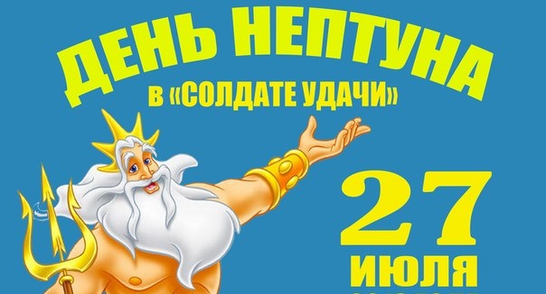 Отдых и развлеченияПарк приключений и активного отдыха "Солдат удачи" приглашает поучаствовать в праздничном мероприятии посвященному Дню Нептуна. Каждый из Вас сможет принять участие в увлекательных конкурсах, задорных боях, зажигательной дискотеке и лотерее! Участников ждут призы и награды от рассудительного Нептуна и внучки Русалочки! Брызги и хорошее настроение обеспечены! Ждем вас 27 июля 2013 года!
