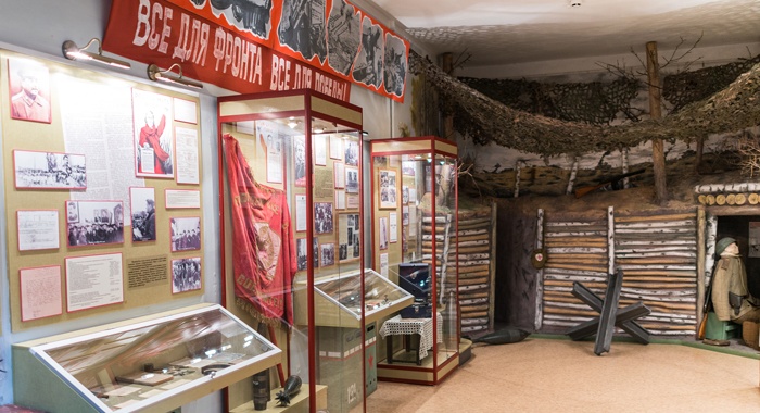 Экспозиция построена на двух составляющих – фронт и тыл. Йошкар-Ола, являясь глубоким тыловым городом, стала кузницей Победы в Великой Отечественной войне, как и множество других городов нашей страны. Здесь на трёх крупных эвакуированных заводах (Киевский завод "XIII лет Октября" (ныне завод «Торгмаш»), завод №297 (ныне ММЗ) и завод №298 (ныне ЗПП) производилась оборонная продукция. В экспозиции отдела представлены образцы снарядов, военной оптики, бытовых приборов. Обширный фото- и документальный материал, личные вещи и награды фронтовиков свидетельствуют о героическом и грозном времени великой войны, о великом подвиге народа.