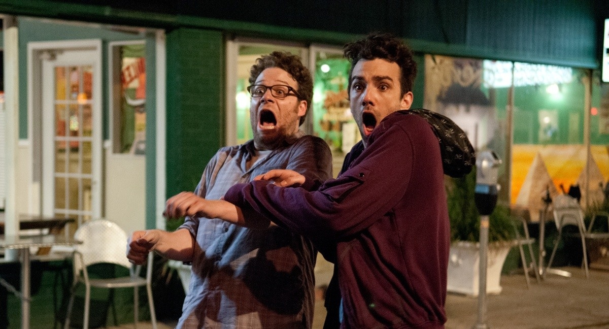 В магазине лучи синего света с неба вдруг унесли несколько покупателей. Перепуганные Роген и Барушель бегут в дом Франко на фоне взрывов, автомобильных аварий, а также массового хаоса, но на вечеринке синие лучи никого не тронули. Подвыпившие гости не верят россказням Барушеля и объявляют его сумасшедшим, но через несколько секунд слышат снаружи грохот…
