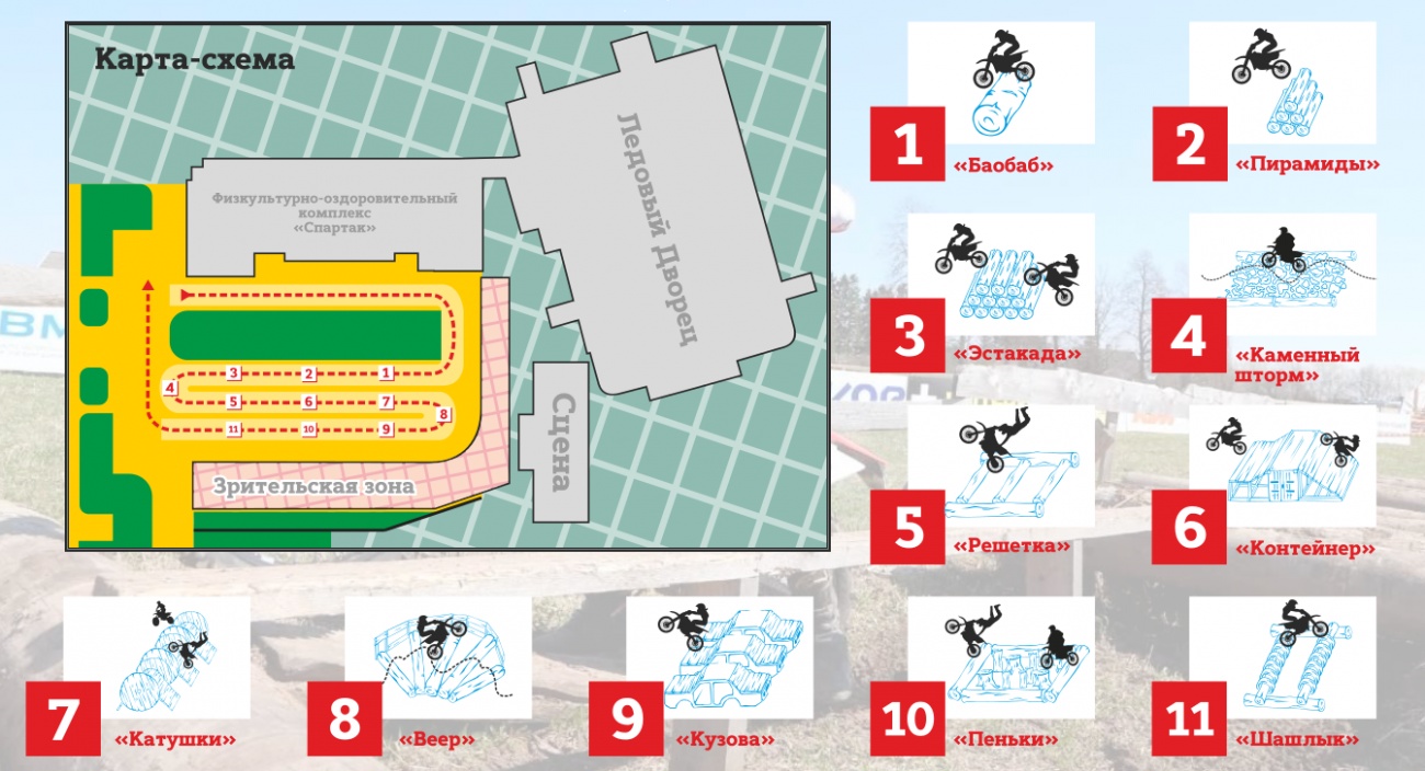 Место проведения: спортивная площадь у Ледового Дворца и плавательных бассейнов на ул.Карла Маркса. Здесь будет построен Экстрим-парк (стадион — из бревен, досок, колес, старых машин и камней) — самая красочная часть соревнований.