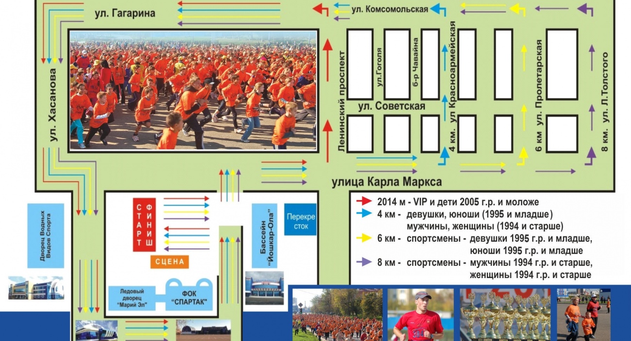 Отдых и развлеченияВсероссийский день бега «Кросс Наций - 2014». «Кросс Нации» – это массовое и масштабное спортивное мероприятие на территории России. В этом году общий старт будет дан в 80 субъектах РФ. В Марий Эл этот кросс проводится ежегодно, начиная с 2005 года. Наряду с любителями на старт выходят и спортсмены-профессионалы, которые на личном примере демонстрируют уважение к спорту. Для любителей бега предусмотрена дистанция 4 км, для спортсменов – дистанции 6 и 8 км, в зависимости от возраста. Кроме того, будет проведен специальный VIP-забег на 2014 метров, в котором примут участие представители власти, политические деятели, а также дети до 10 лет. Маршрут будет проходить по главным улицам Йошкар-Олы: Ленинскому проспекту, Красноармейской, Пролетарской, Льва Толстого – в зависимости от выбранной дистанции. Старт будет дан в 12:00.