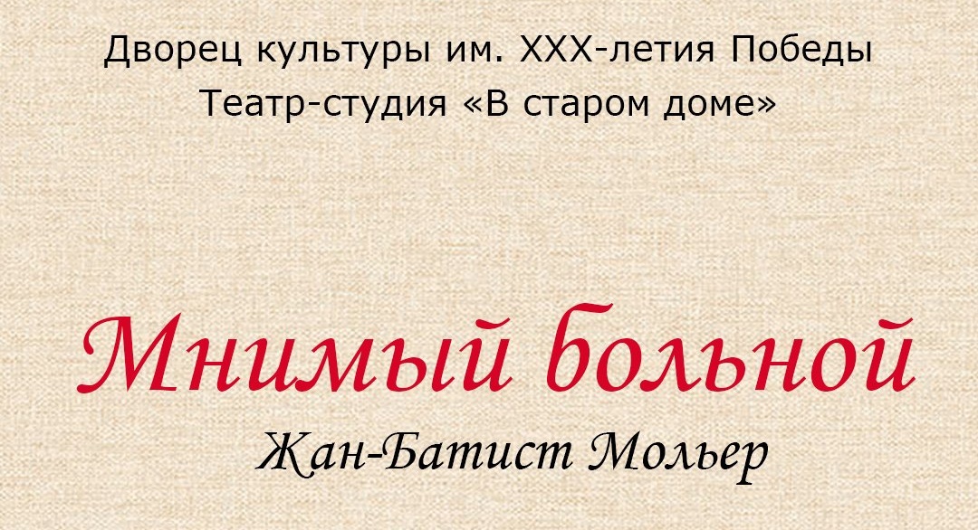 В преддверии весны предлагаем вам вместе с нами пошутить и погрустить о любви на спектакле по пьесе Жана-Батиста Мольера «Мнимый больной».
