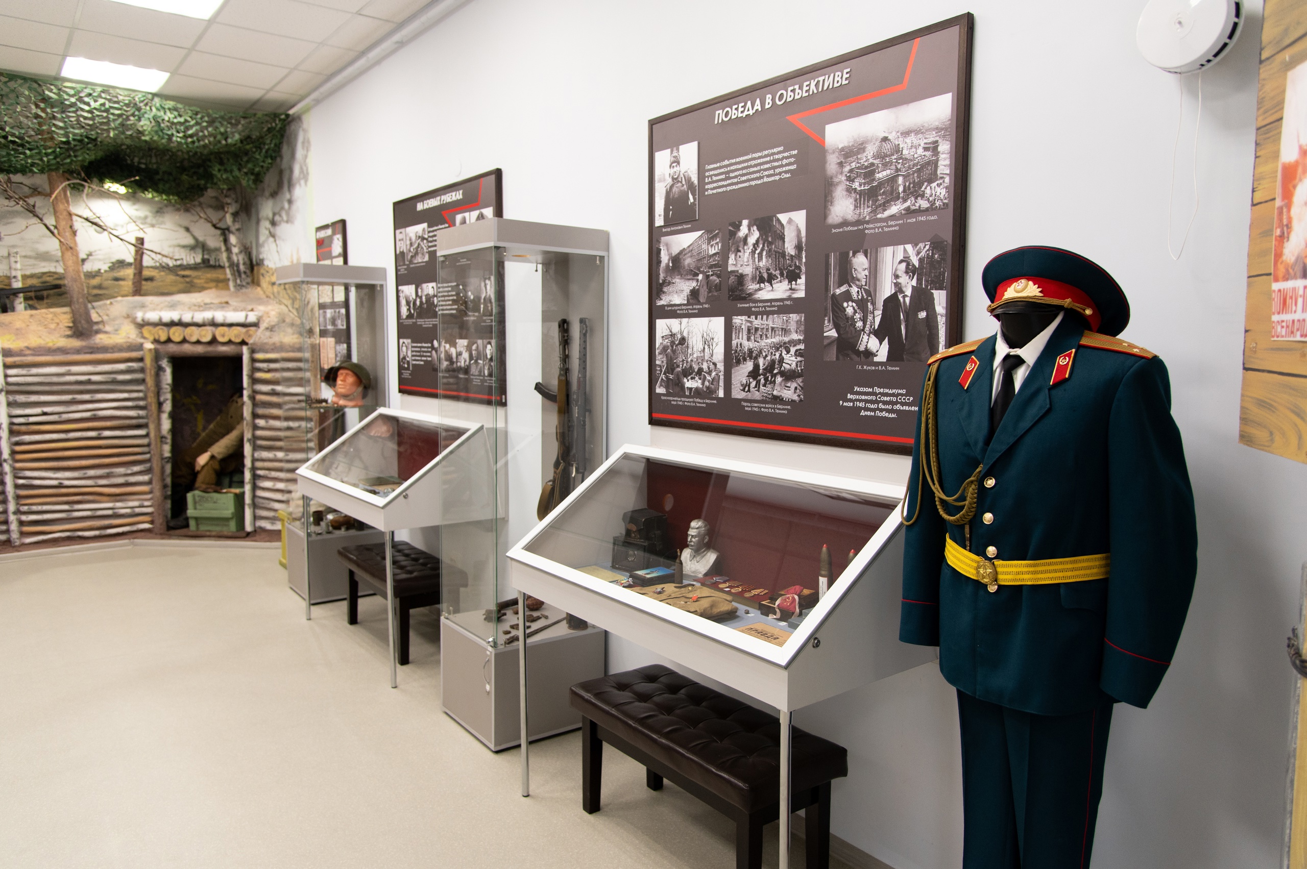 Экспозиция построена на двух составляющих — фронт и тыл. Йошкар-Ола, являясь глубоким тыловым городом, стала кузницей Победы в Великой Отечественной войне, как и множество других городов нашей страны. Здесь на трёх крупных эвакуированных заводах (Киевский завод «XIII лет Октября» (ныне завод «Торгмаш»), завод № 297 (ныне ММЗ) и завод № 298 (ныне ЗПП) производилась оборонная продукция.