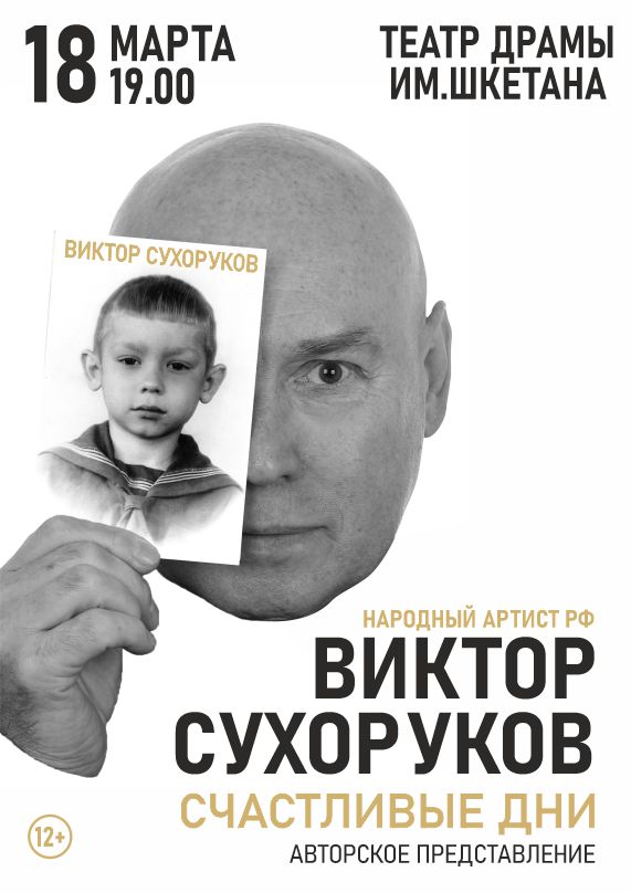 В гостях в нашем городе будет один из самых удивительных, темпераментных и харизматичных актеров современного театра и кинематографа — народный артист России Виктор Сухоруков, куда он приезжает с авторским представлением «Счастливые дни». Его имя – синоним творческой неуспокоенности, работоспособности, человеческой и актерской открытости. О нем хочется говорить только в превосходной степени: талантливейший, популярнейший, многоликий, неутомимый. Одним словом - человек-оркестр. «Счастливые дни» — это история жизни автора в воспоминаниях, монолог о призвании, мечтах, любви и благодарности.