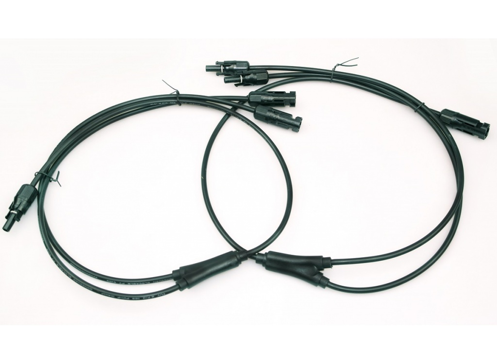 MC4 Y-коннектор 500 мм для кабеля 4 мм² Данный товар состоит из двух штук кабеля: с MC4 коннекторами c кабелем длиной 500 мм 4 мм²: двух «пап» и одной «мамы» двух «мам» и одного «папы» Назначение: для параллельного соединения солнечных батарей, когда нет возможности соединить коннектором для параллельного соединения.