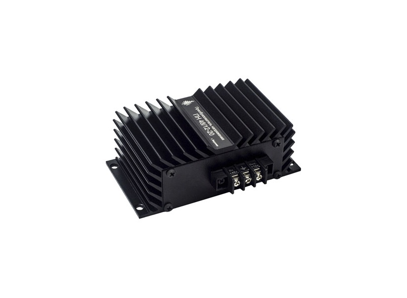 Этот преобразователь напряжения предназначен для питания аппаратуры, рассчитанной на номинальное входное напряжение 12В, от бортовой сети с номинальным напряжением 48В. Максимальная потребляемая нагрузкой долговременная мощность 270Вт позволяет использовать этот преобразователь для питания как автономных отопителей на жидком топливе, мощных автомобильных ламп, так и других потребителей с высокими пусковыми токами. Мощность: 270 Вт U вх: 40 – 60 В U вых: 13,5 ± 0,1 В Преимущества: Защита от перегрузки по току на выходе Защита от короткого замыкания на выходе Защита от аварийного повышения напряжения на выходе Защита от перегрева Возможность параллельного включения Уверенная работа в условиях вибраций, постоянного изменения температур и влажности