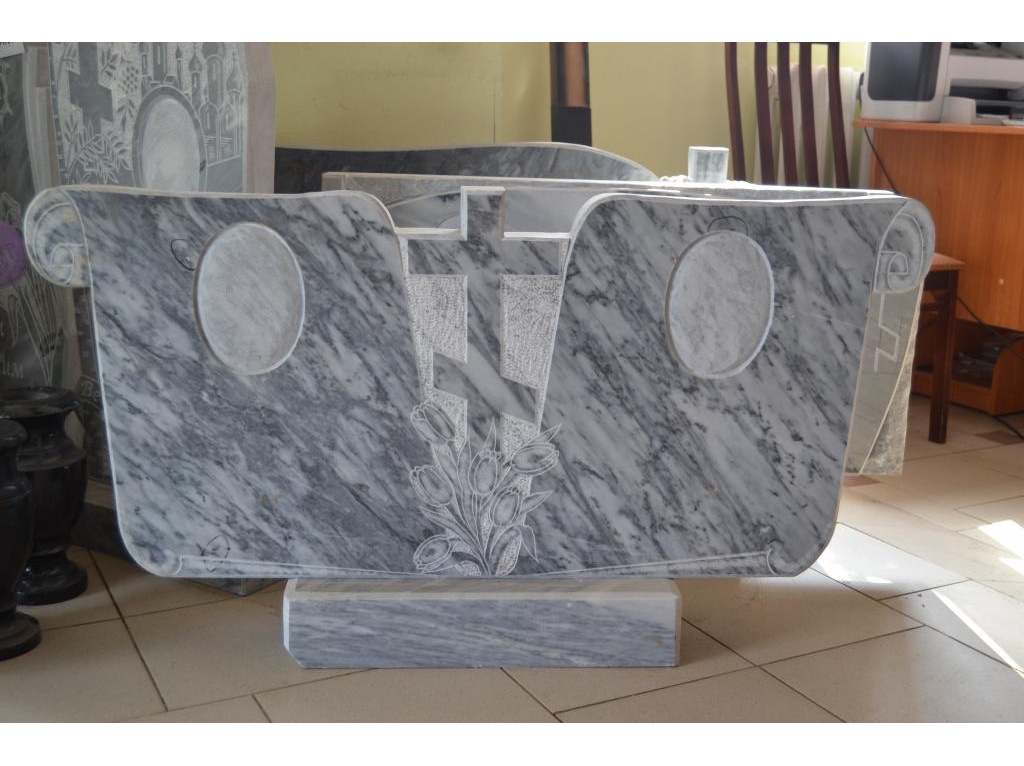 Стела прямая, горизонтальная, односторонней полировки, в форме свитков, с крестом по центру, на подставке