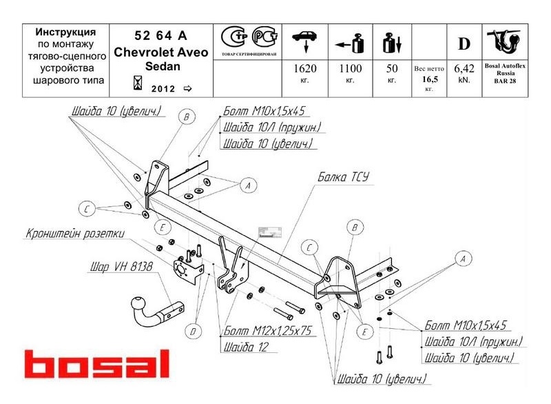 Фаркоп для Chevrolet Aveo (Шевроле Авео) Sedan (2012-) без электрики