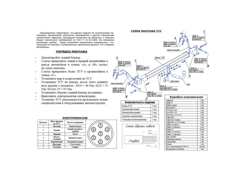Фаркоп для Citroen Berlingo ll (Ситроен Берлинго ll) 4380 mm Peugeot Partner ll (2008-) кроме длинной базы Без электропакета
