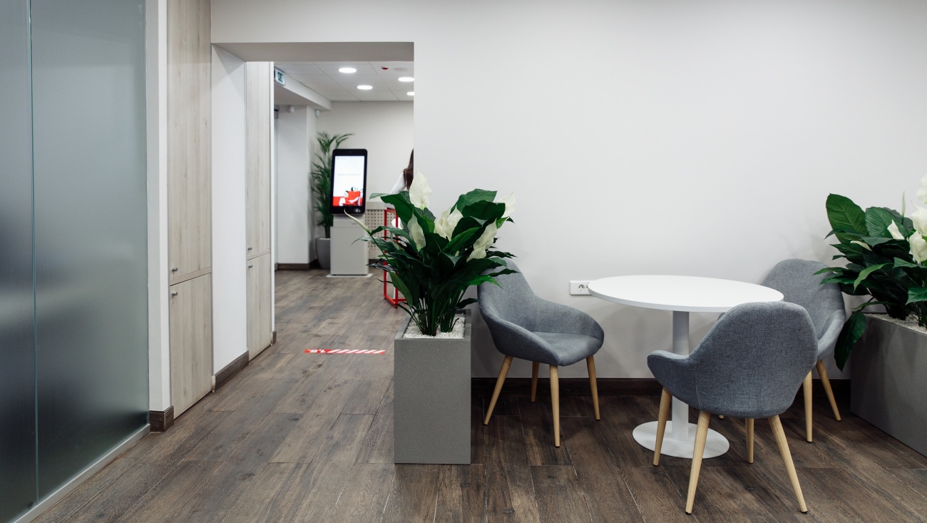 Вместо этого мягкие кресла, диваны и столики с зарядкой для смартфона. Клиенты могут располагаться, где им захочется. Скоротать время можно за чашечкой кофе. При этом никакой живой очереди и бумажных талончиков. Понятно, почему посетители сравнивают это место с коворкингом или современной студией.