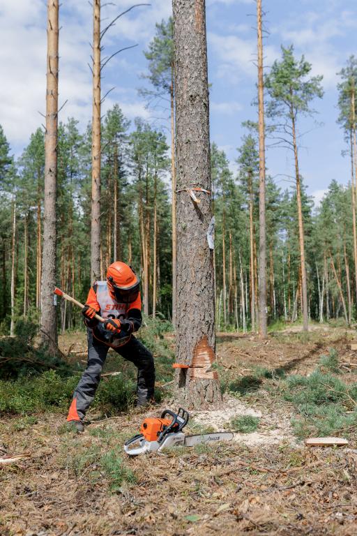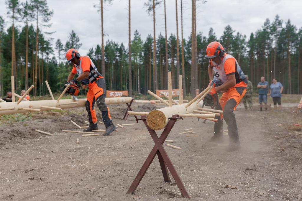 В этом году лесорубов ждали пять испытаний: валка дерева, комбинированная раскряжевка дерева, точная раскряжевка дерева, обрезка сучьев, замена пильной цепи на бензопиле STIHL.