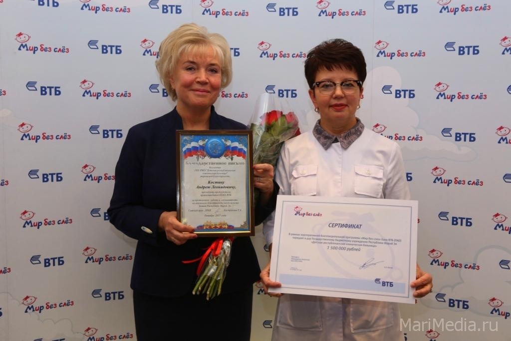 Необходимо сказать, что благотворительная программа «Мир без слёз» за 14 лет своего существования оказала разную помощь более 100 детским больницам в 52 регионах страны. Общий объем помощи оказан на 300 миллионов рублей. За финансовой стороной этого проекта стоит банк ВТБ. Чтобы стать участником акции, по словам директора филиала в Йошкар-Оле Галины Мокшиной, нужно всего лишь подать заявку. Именно так получила помощь Детская республиканская клиническая больница в Йошкар-Оле. При этом участники программы — сами медучреждения — покупку выбирают самостоятельно: оборудование, лекарства или требующиеся расходные материалы.