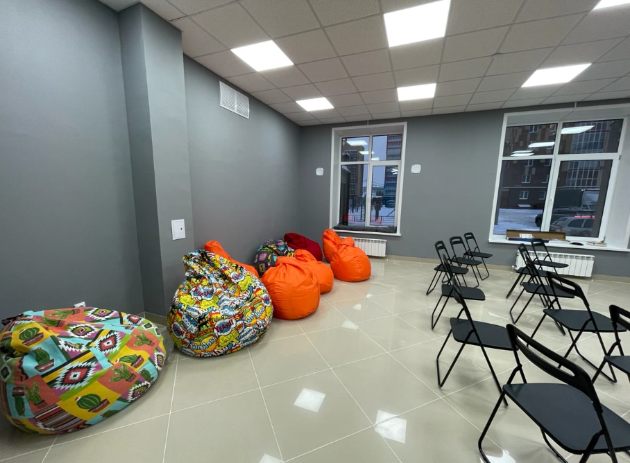 Локация расположена на живописном берегу реки Малая Кокшага в новом микрорайоне по адресу Прибрежный проезд 14. Помещение в 200 квадратных метров разделено на четыре зоны: кухня-столовая, два рабочих зала и отдельный для мероприятий.
