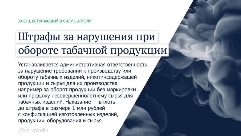 Председатель Госдумы Вячеслав Володин в своём телеграм-канале написал о законах, которые вступят в силу с апреля 2024 года.