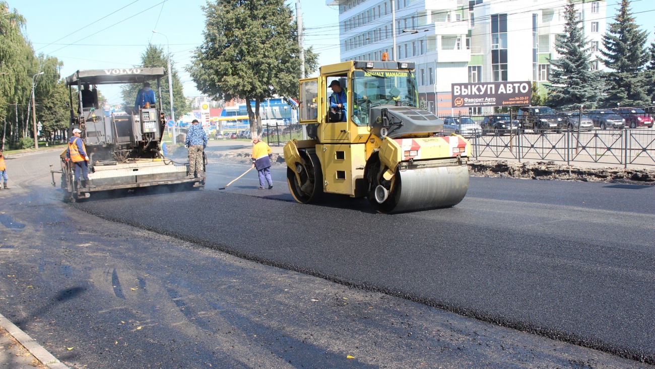 На улице К. Маркса укладывают нижний слой асфальтового покрытия