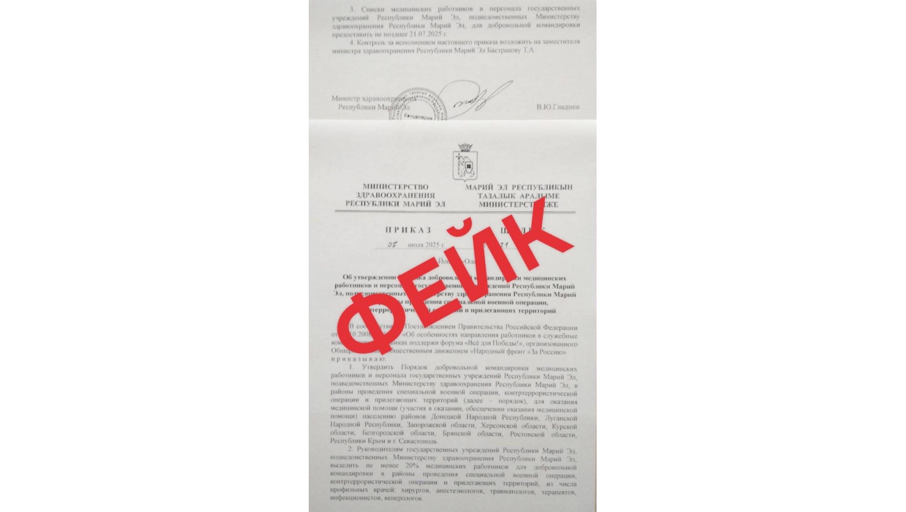 В интернете появился фейковый приказ за подписью министра здравоохранения Марий Эл