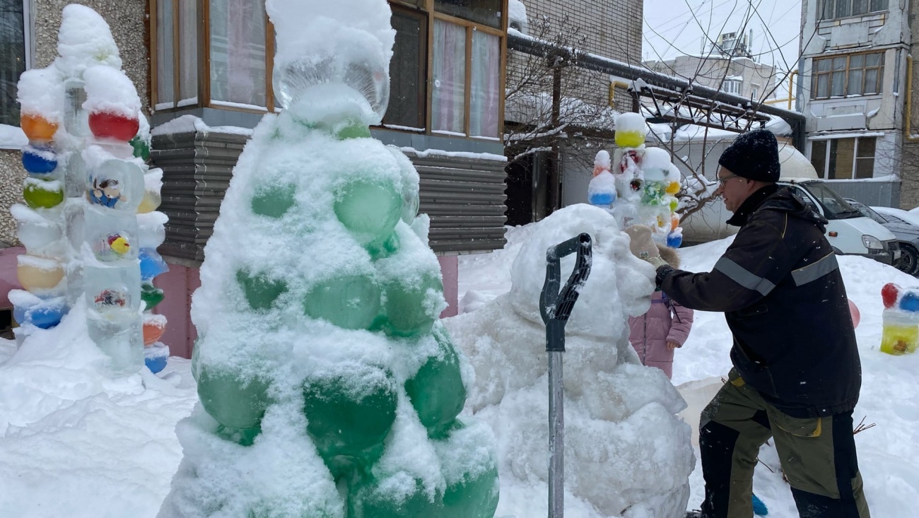 Житель одного из многоквартирных домов по улице Подольских курсантов уже десять лет создаёт снежные и ледяные скульптуры.