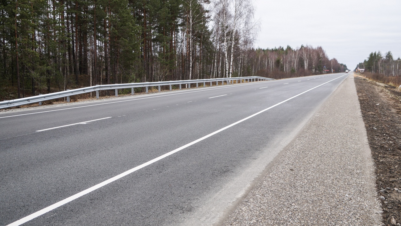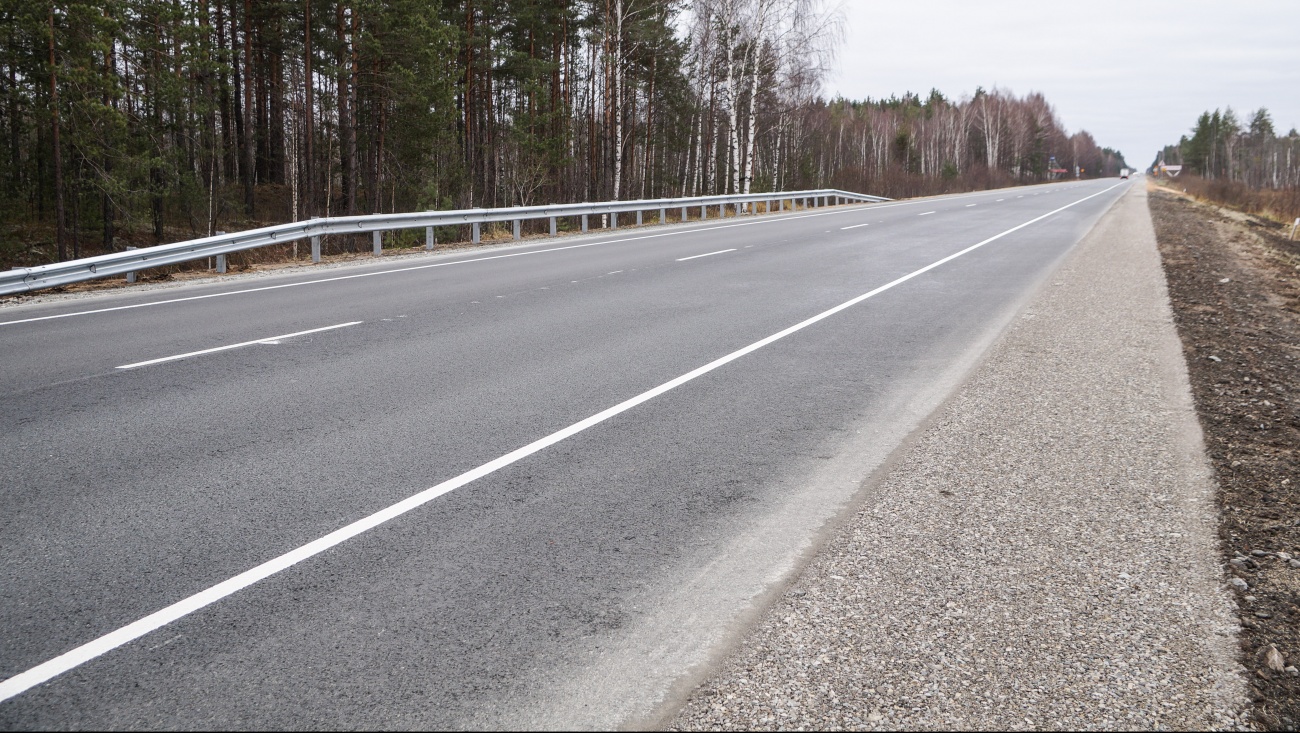 Дорожники восстановили основание дорожной одежды методом холодной регенерации и уложили два слоя асфальтобетона, обочины укрепили щебнем.