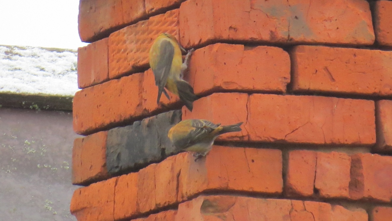 На печных трубах кордонного дома были замечены необычные гости — клесты-еловики.