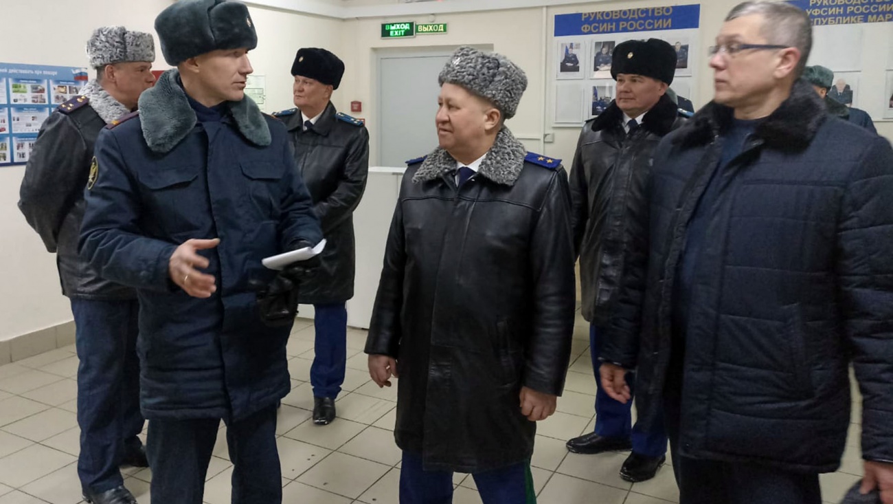 В плановом выезде в режимное учрежедение приняли участие старший помощник прокурора Марий Эл по надзору за соблюдением законов при исполнении уголовных наказаний Сергей Завойских, руководитель специальной прокуратуры по надзору Александр Ямиданов, а также уполномоченный по правам человека в регионе Фанис Мухаметгалиев.