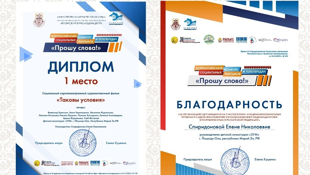 Юные кинематографисты из йошкар-олинской киностудии «Зум» завоевали серебро Международного конкурса «Без срока давности: непокорённые».