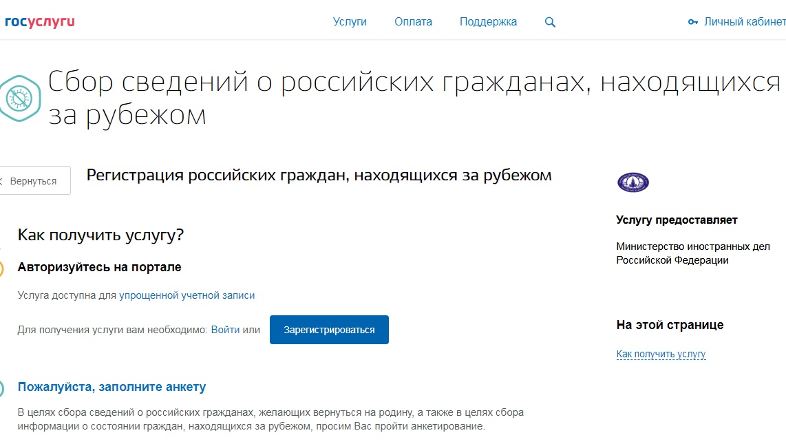 Пользователи могут запросить помощь в организации возвращения в Россию.