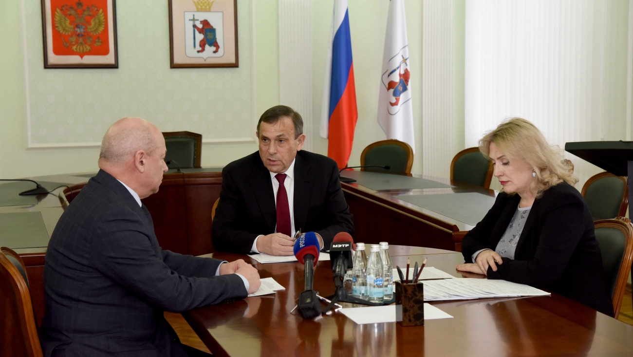 Александр Евстифеев провёл рабочую встречу с министром строительства, архитектуры и жилищно-коммунального хозяйства Михаилом Леонтьевым и министром государственного имущества республики Натальей Севостьяновой.