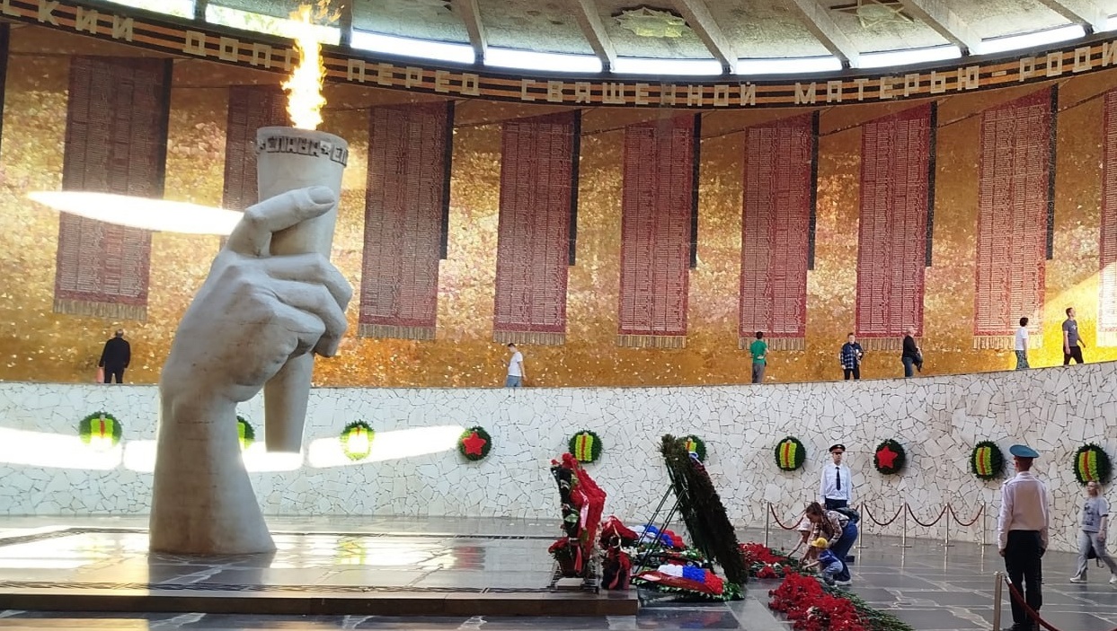 От имени молодёжи и всех жителей республики она возложила цветы к Вечному огню на Мамаевом кургане — как дань глубокого уважения к тем, кто в 1942–1943 годах защищал Сталинградскую землю ценой жизни.